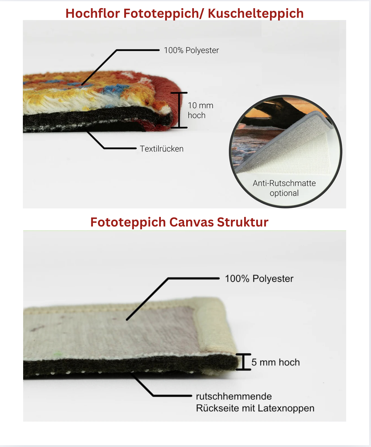 - Hochflor Fototeppich/ Kuschelteppich mit 10 mm Florhöhe